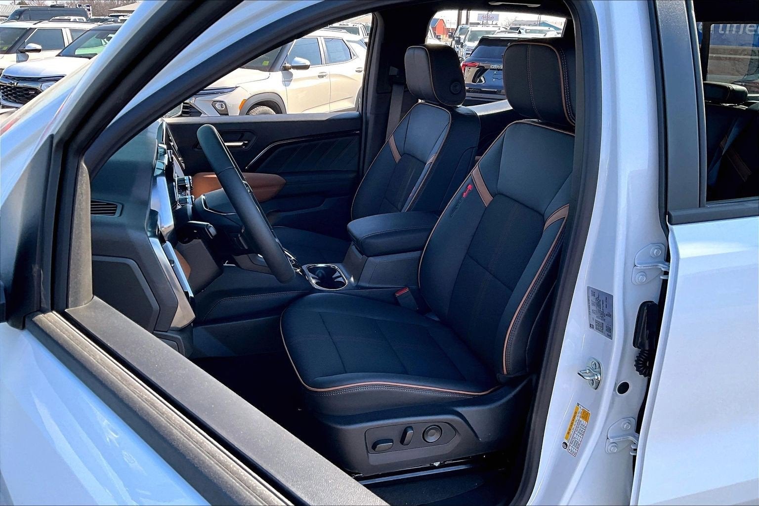 Summit White 2026 GMC Canyon AT4 4WD 8-Speed Automatic 2.7L I4 Turbocharged DOHC 16V LEV3-SULEV30 310hp 4WD, 120-Volt Bed Mounted Power Outlet, 2 1st Row USB Charge/Data Ports, 2 Rear USB Ports in Center Console (Charge-Only), 3 Years SiriusXM, 3.42 Rear Axle Ratio, 4-Way Manual Front Passenger Seat Adjuster, 4-Wheel Disc Brakes, 6 Speakers, 6-Speaker Audio System Feature, 8-Way Power Driver Seat Adjuster, ABS brakes, Air Conditioning, Alloy wheels, AM/FM radio: SiriusXM with 360L, Apple CarPlay/Android Auto, Auto High-beam Headlights, Auto-dimming Rear-View mirror, Automatic Emergency Braking, Automatic Stop/Start, Automatic temperature control, Blind Zone Steering Assist with Trailering, Brake assist, Bumpers: body-color, Canyon Pro Safety, Canyon Safety Plus Package, Cloth/CoreTec Seat Trim, Compass, Delay-off headlights, Driver and Front Passenger Illuminated Visors, Driver door bin, Driver Mode Selector, Driver vanity mirror, Dual front impact airbags, Dual front side impact airbags, Dual-Zone Automatic Climate Control Air Conditioning, Electronic Stability Control, Emergency communication system: OnStar, EZ-Lift and Lower Tailgate, Following Distance Indicator, Forward Collision Alert, Front anti-roll bar, Front Bucket Seats, Front Center Armrest, Front dual zone A/C, Front fog lights, Front LED Fog Lamps, Front License Plate Kit, Front Passenger Seatback Map Pocket, Front Pedestrian and Bicyclist Braking, Front reading lights, Front wheel independent suspension, Heated door mirrors, Heated Driver and Front Passenger Seats, Heated front seats, Illuminated entry, Inside Rear-View Auto-Dimming Mirror, IntelliBeam Automatic High Beam on/Off, Interior Overhead Courtesy Light with Dual Reading Lamp, Lane Keep Assist with Lane Departure Warning, Low tire pressure warning, MultiStow Tailgate Storage Compartment, Navigation System, Occupant sensing airbag, Off-Road Suspension, Outside temperature display, Overhead airbag, Overhead console, Panic alarm, Passenger door bin, Passenger vanity mirror, Power door mirrors, Power Driver Lumbar Control Seat Adjuster, Power driver seat, Power steering, Power windows, Preferred Equipment Group 4SG, Radio data system, Radio: 11.3 Diagonal Premium GMC Infotainment System, Rear Cross Traffic Braking, Rear of Console 120-Volt Power Outlet, Rear reading lights, Rear step bumper, Rear window defroster, Remote keyless entry, Remote Vehicle Starter System, Security system, SiriusXM with 360L, Speed control, Speed-sensing steering, Split folding rear seat, Spray-on Bedliner with GMC Logo, Steering wheel mounted audio controls, Stop/Start System Disable Button Engine Control, Tachometer, Tailgate Keyed Cylinder Lock, Telescoping steering wheel, Til and Telescopic Manual Steering Column, Tilt steering wheel, Traction control, Trip computer, Ultrasonic Rear Park Assist, Variably intermittent wipers, Wheels: 18 x 8.5 Gloss Black Aluminum, Wireless Apple CarPlay/Wireless Android Auto, 4WD.
