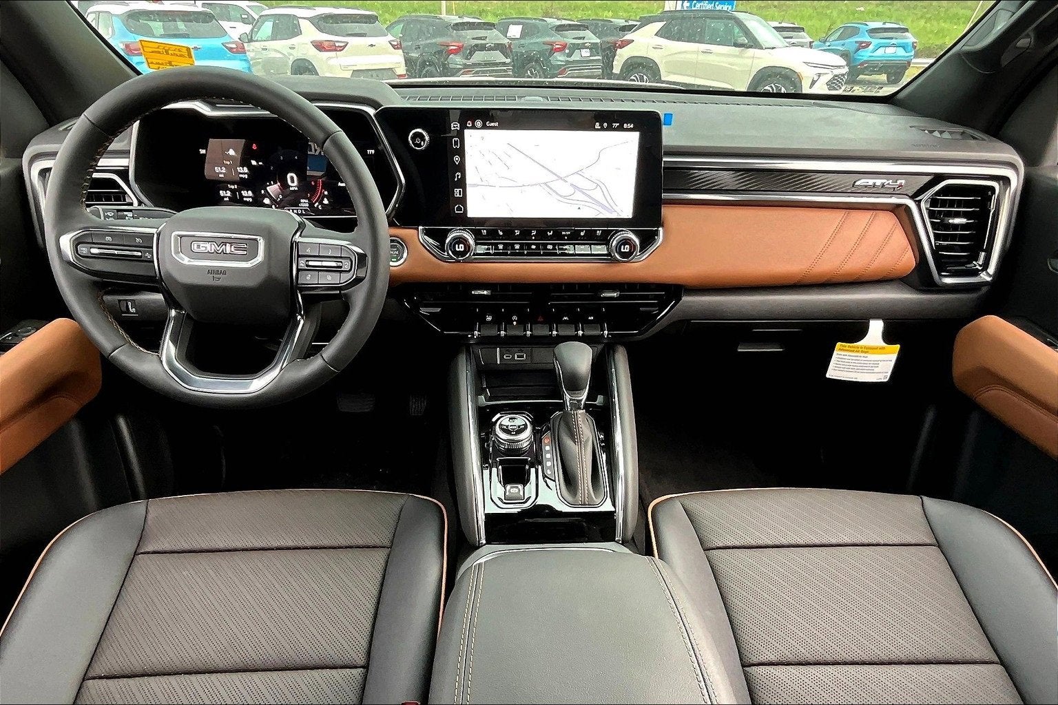 Onyx Black 2026 GMC Canyon AT4 4WD 8-Speed Automatic 2.7L I4 Turbocharged DOHC 16V LEV3-SULEV30 310hp 4WD, 120-Volt Bed Mounted Power Outlet, 2 1st Row USB Charge/Data Ports, 2 Rear USB Ports in Center Console (Charge-Only), 3.42 Rear Axle Ratio, 4-Way Manual Front Passenger Seat Adjuster, 4-Wheel Disc Brakes, 6 Speakers, 6-Speaker Audio System Feature, 6-Way Power Passenger Seat Adjuster, 8-Way Power Driver Seat Adjuster, ABS brakes, Air Conditioning, Alloy wheels, AM/FM radio: SiriusXM with 360L, Apple CarPlay/Android Auto, AT4 Premium Package, Auto High-beam Headlights, Auto-dimming Rear-View mirror, Automatic Emergency Braking, Automatic Stop/Start, Automatic temperature control, Blind Zone Steering Assist with Trailering, Brake assist, Bumpers: body-color, Canyon Pro Safety, Canyon Safety Plus Package, Cloth/CoreTec Seat Trim, Compass, Delay-off headlights, Driver and Front Passenger Illuminated Visors, Driver and Front Passenger Ventilated Seats, Driver door bin, Driver Memory, Driver Mode Selector, Driver Seatback Map Pocket, Driver vanity mirror, Dual front impact airbags, Dual front side impact airbags, Dual-Zone Automatic Climate Control Air Conditioning, Electronic Stability Control, Emergency communication system: OnStar, EZ-Lift and Lower Tailgate, Following Distance Indicator, Forward Collision Alert, Front anti-roll bar, Front Bucket Seats, Front Center Armrest, Front dual zone A/C, Front fog lights, Front LED Fog Lamps, Front Passenger Seatback Map Pocket, Front Pedestrian and Bicyclist Braking, Front reading lights, Front wheel independent suspension, Heated door mirrors, Heated Driver and Front Passenger Seats, Heated front seats, Heated Steering Wheel, Illuminated entry, Inside Rear-View Auto-Dimming Mirror, IntelliBeam Automatic High Beam on/Off, Interior Overhead Courtesy Light with Dual Reading Lamp, Lane Keep Assist with Lane Departure Warning, Low tire pressure warning, MultiStow Tailgate Storage Compartment, Navigation System, Occupant sensing airbag, Off-Road Suspension, Outside temperature display, Overhead airbag, Overhead console, Panic alarm, Passenger door bin, Passenger vanity mirror, Perforated Leather-Appointed Seat Trim, Power door mirrors, Power Driver Lumbar Control Seat Adjuster, Power driver seat, Power Passenger Lumbar Control Seat Adjuster, Power steering, Power windows, Preferred Equipment Group 4SG, Radio data system, Radio: 11.3 Diagonal Premium GMC Infotainment System, Rear Center Fold-Down Armrest with 2 Cupholders, Rear Cross Traffic Braking, Rear of Console 120-Volt Power Outlet, Rear reading lights, Rear step bumper, Rear window defroster, Remote keyless entry, Remote Vehicle Starter System, Security system, SiriusXM with 360L, Speed control, Speed-sensing steering, Split folding rear seat, Steering wheel mounted audio controls, Stop/Start System Disable Button Engine Control, Tachometer, Tailgate Keyed Cylinder Lock, Telescoping steering wheel, Til and Telescopic Manual Steering Column, Tilt steering wheel, Traction control, Trip computer, Ultrasonic Rear Park Assist, Variably intermittent wipers, Wheels: 18 x 8.5 Gloss Black Aluminum, Wireless Apple CarPlay/Wireless Android Auto, Wireless Phone Charging, 4WD.