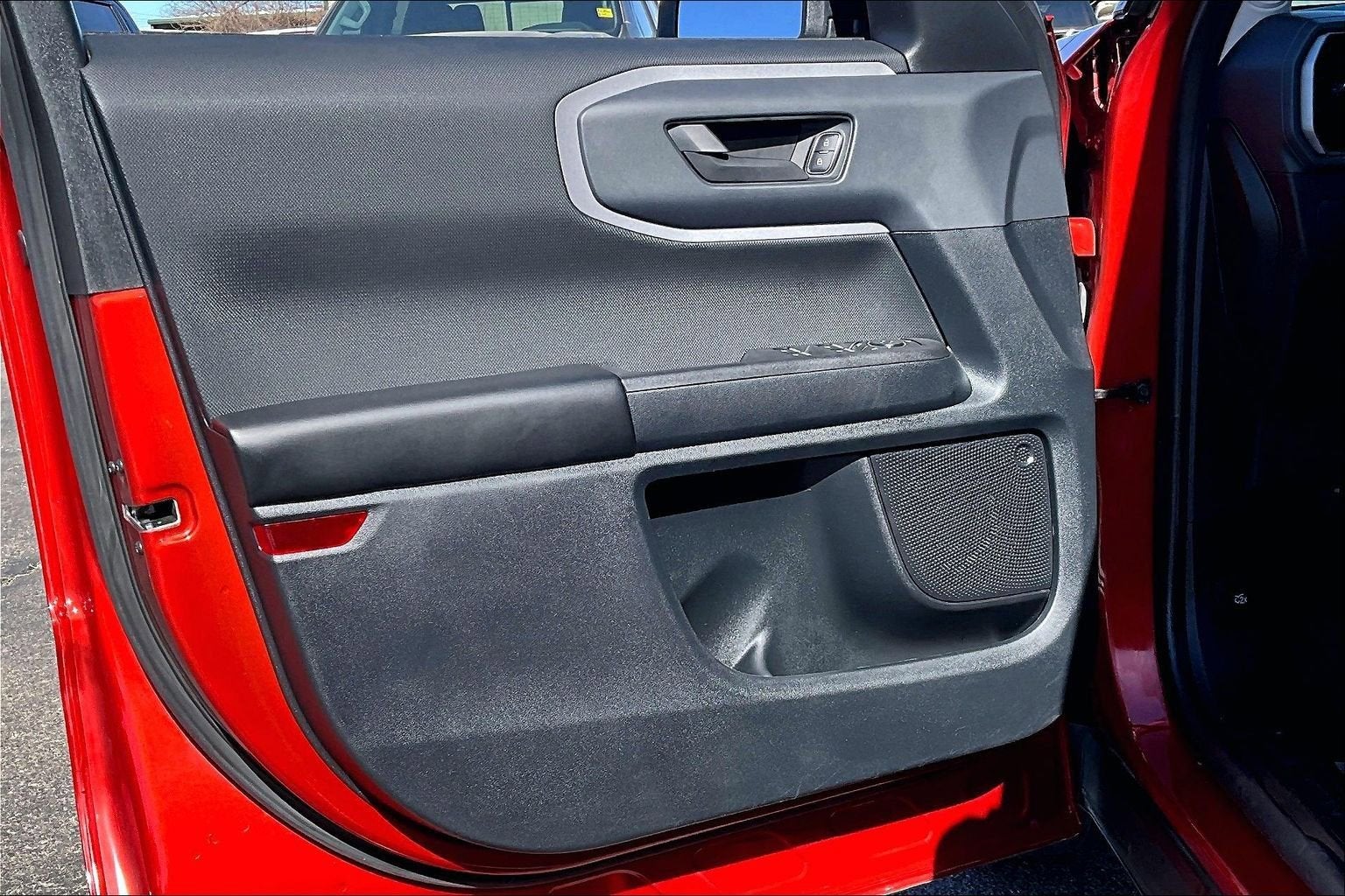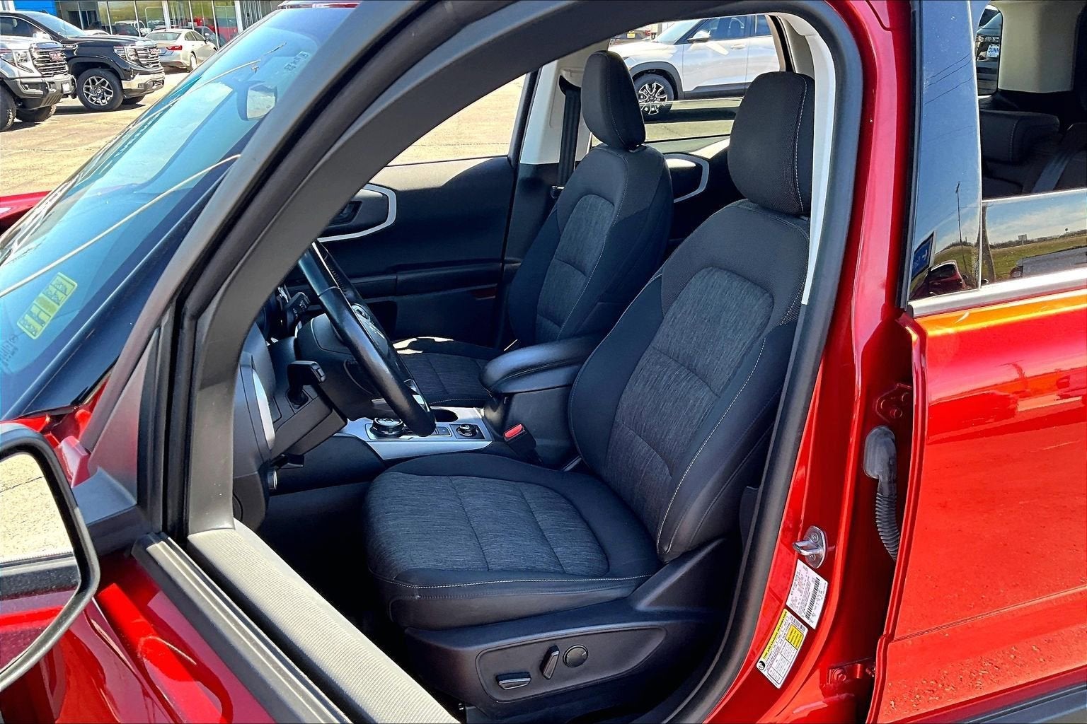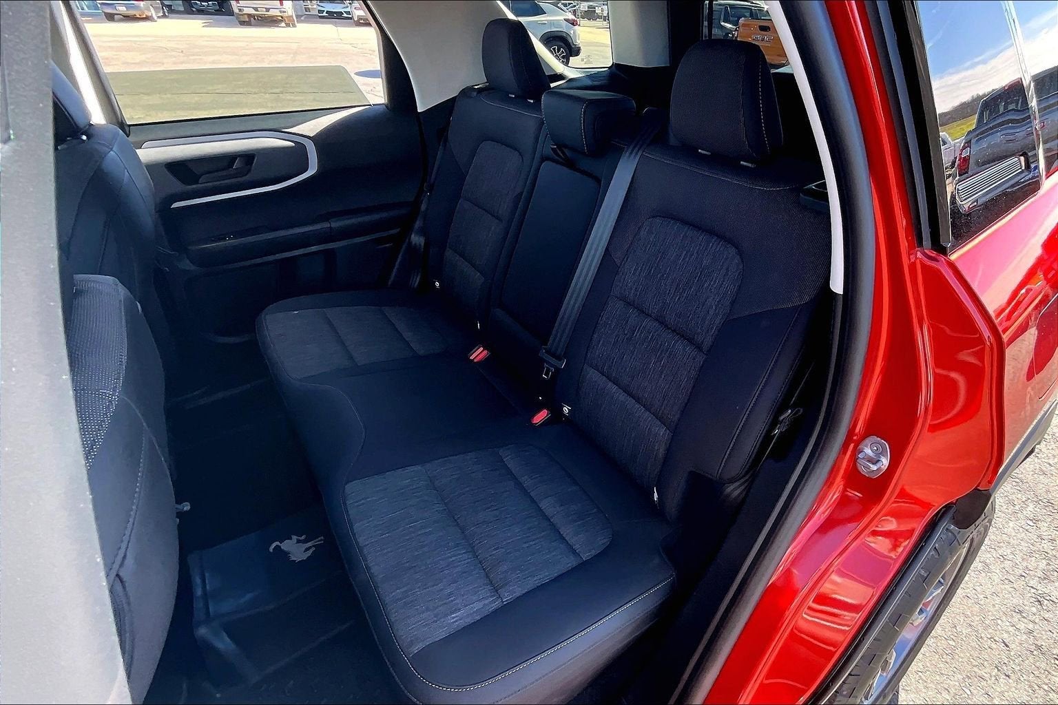 3.80 Axle Ratio, 4-Wheel Disc Brakes, 6 Speakers, ABS brakes, Air Conditioning, Alloy wheels, AM/FM radio: SiriusXM, AM/FM Stereo, Auto High-beam Headlights, Automatic temperature control, Brake assist, Compass, Convenience Package, Delay-off headlights, Driver door bin, Driver vanity mirror, Dual front impact airbags, Dual front side impact airbags, Electronic Stability Control, Emergency communication system: SYNC 3 911 Assist, Equipment Group 200A, Four wheel independent suspension, Front & Rear Floor Liners w/Carpet Mats, Front anti-roll bar, Front Bucket Seats, Front Center Armrest, Front Driver & Passenger Seatback Zipper Pockets, Front reading lights, Fully automatic headlights, Heated door mirrors, Heated Front Bucket Seats, Illuminated entry, Intelligent Access (Lock/Unlock), Knee airbag, Leather-Wrapped Steering Wheel, LED Fog Lamps, Low tire pressure warning, Occupant sensing airbag, Outside temperature display, Overhead airbag, Overhead console, Panic alarm, Passenger door bin, Passenger vanity mirror, Power door mirrors, Power steering, Power windows, Radio data system, Rear anti-roll bar, Rear Parking Sensors, Rear reading lights, Rear seat center armrest, Rear window defroster, Rear window wiper, Remote keyless entry, Roof rack: rails only, Rubberized Second Row Seat Backs, Security system, SiriusXM Radio, Speed control, Speed-sensing steering, Speed-Sensitive Wipers, Split folding rear seat, Steering wheel mounted audio controls, SYNC 3 Communications & Entertainment System, SYNC 3/Apple CarPlay/Android Auto, Tachometer, Telescoping steering wheel, Tilt steering wheel, Traction control, Trip computer, Unique Cloth Front Bucket Seats, Universal Garage Door Opener (UGDO), Variably intermittent wipers, Wheels: 17 Carbonized Gray-Painted Aluminum, Wireless Charging Pad. CARFAX One-Owner. 2022 Ford Bronco Sport Hot Pepper Red Tinted Clearcoat 1.5L EcoBoost Big Bend 8-Speed Automatic 4WD