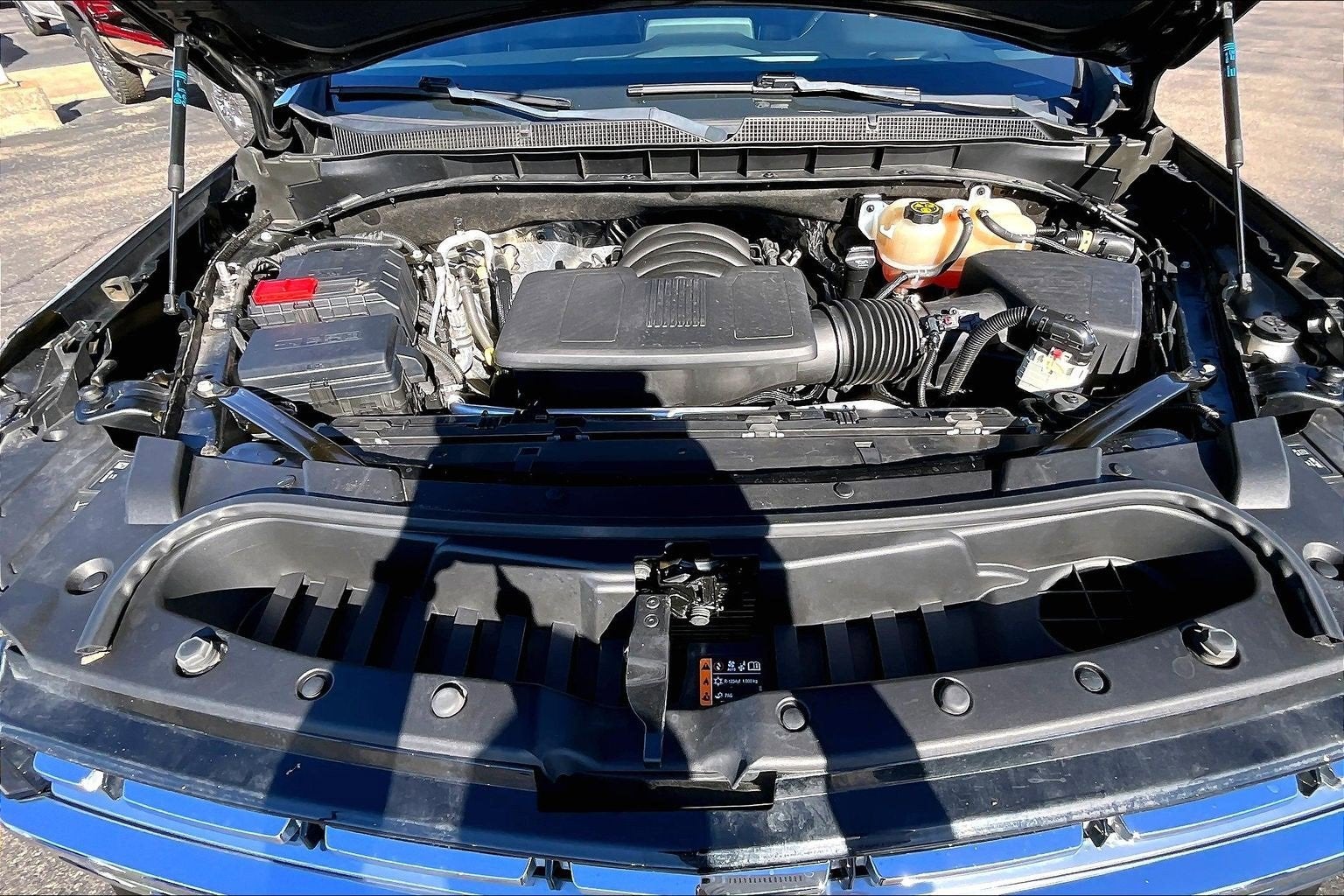 4WD, Jet Black Leather, 10 Speakers, 1st & 2nd Row Color-Keyed Carpeted Floor Mats, 1st, 2nd & 3rd Rows All-Weather Floor Liners (LPO), 2-Speed Active Electronic AutoTrac Transfer Case, 20 x 9 Polished Aluminum Wheels, 3.23 Rear Axle Ratio, 3rd Row 60/40 Power-Folding Split-Bench Seat, 3rd row seats: split-bench, 4-Wheel Disc Brakes, ABS brakes, Adaptive suspension, Air Conditioning, All-Weather Cargo Mat (LPO), Alloy wheels, AM/FM radio: SiriusXM with 360L, Apple CarPlay/Android Auto, Auto High-beam Headlights, Auto-dimming door mirrors, Auto-Dimming Inside Rear-View Mirror, Auto-dimming Rear-View mirror, Auto-leveling suspension, Automatic temperature control, Black Name Plates (LPO), Bose 10-Speaker Centerpoint Surround Audio Sys Ft, Brake assist, Bright Front & Rear Door Sill Plates, Bumpers: body-color, Chrome Door Handles w/Body-Color Strip, Chrome Mirror Caps, Color-Keyed Carpeting Floor Covering, Compass, Delay-off headlights, Driver & Front Outboard Passenger Airbags, Driver door bin, Driver vanity mirror, Dual Exhaust System, Dual front impact airbags, Dual front side impact airbags, Electronic Stability Control, Emergency communication system: OnStar and Chevrolet connected services capable, Enhanced Driver Information Center, Floor Console, Four wheel independent suspension, Front & Rear Black Bowtie Emblems (LPO), Front anti-roll bar, Front Bucket Seats, Front Center Armrest, Front dual zone A/C, Front High-Back Reclining Bucket Seats, Front reading lights, Fully automatic headlights, Garage door transmitter, Hands-Free Rear Power Programmable Liftgate, Heated & Ventilated Driver & Front Passenger Seats, Heated 2nd Row Outboard Seats, Heated door mirrors, Heated Driver & Front Passenger Seats, Heated front seats, Heated rear seats, Heated Steering Wheel, Heated steering wheel, Hill Descent Control, Illuminated entry, Illuminated Mirror Chevrolet Emblem (LPO), Infotainment Display, Lane Change Alert w/Side Blind Zone Alert, LED Daytime Running Lamps, Low tire pressure warning, Magnetic Ride Control Suspension, Memory seat, Memory Settings, Navigation System, Not Equipped w/4-Way Driver & Fr Pass Pwr Lumbar, Not Equipped w/Wireless Charging, Occupant sensing airbag, Outside Heated Power-Adjustable Mirrors, Outside temperature display, Overhead airbag, Overhead console, Panic alarm, Passenger door bin, Passenger vanity mirror, Perforated Leather Seat Trim, Power door mirrors, Power driver seat, Power Liftgate, Power passenger seat, Power Release 2nd Row Bucket Seats, Power steering, Power Tilt & Telescopic Steering Column, Power windows, Power-Retractable Assist Steps, Preferred Equipment Group 1LZ, Premium audio system: Chevrolet Infotainment 3 Premium, Radio: Chevrolet Infotainment 3 Premium System, Rain sensing wipers, Rear air conditioning, Rear anti-roll bar, Rear Cross Traffic Alert, Rear reading lights, Rear window defroster, Rear window wiper, Remote keyless entry, Remote Start, Roof rack: rails only, Safety Alert Seat, Security system, SiriusXM Radio w/360L, Speed control, Speed-sensing steering, Split folding rear seat, Spoiler, Steering wheel memory, Steering wheel mounted audio controls, Tachometer, Telescoping steering wheel, Tilt steering wheel, Traction control, Trip computer, Turn signal indicator mirrors, Universal Home Remote, Variably intermittent wipers, Ventilated front seats, Voltmeter, Wheels: 22 Multi-Spoke Gloss Black (LPO) (SRV), Wheels: 22 x 9 Steel Interim (LPO), Wireless Charging, Wrapped Steering Wheel, 4WD, Jet Black Leather. CARFAX One-Owner. Clean CARFAX. Odometer is 16090 miles below market average! Priced below KBB Fair Purchase Price! 2023 Chevrolet Tahoe Black EcoTec3 5.3L V8 Premier 10-Speed Automatic with Overdrive 4WD